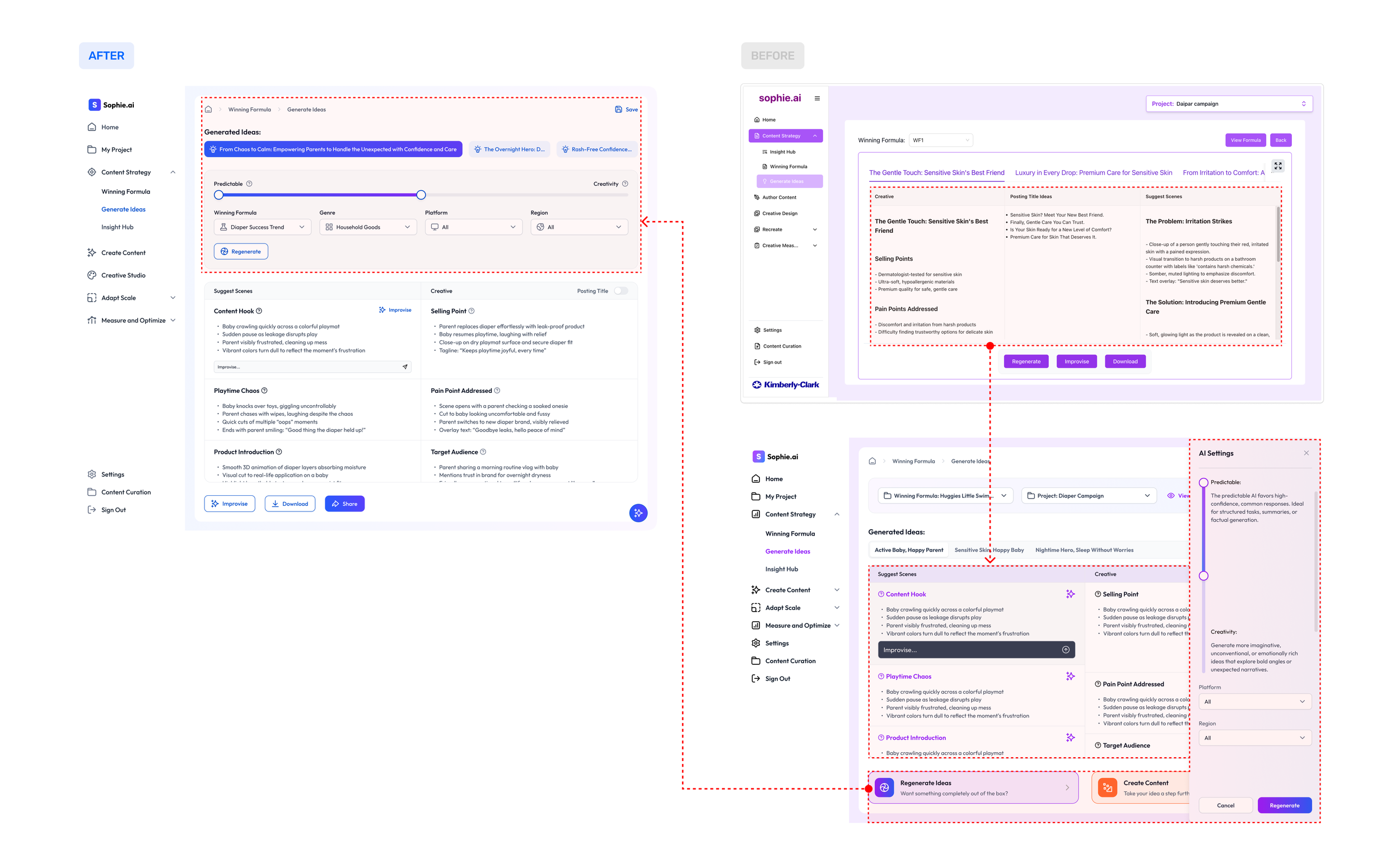 Provide deeper insights or predictive metrics on idea performance to build users’ confidence in AI-generated ideas